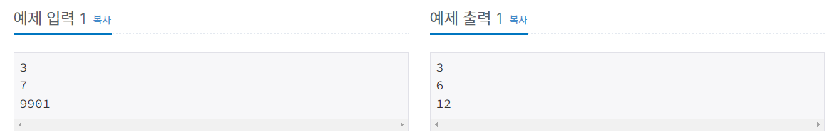 문제를 이해했다면 풀이방법은 크게 두 파트로 나뉜다. 1)여러개의 입력을 계속 받아오는 파트, 2)1로만 이루어진 숫자를 생성하는 파트.